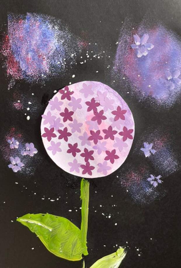 Ольга Викторовна отправилась с детьми в космическое путешествие. В честь наступающего праздника, она предложила нарисовать цветы – подарок космическим существам.